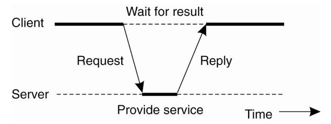 <p>A component (client) requests a service from another component (server) and waits for a response (unless it is a asynchronous request)</p>