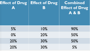 - A combined effect of two drugs administered together (with some or different efficacy) that is greater than the sum of individual response