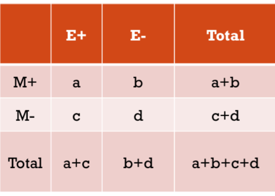 RR = ( a/ a+c )/ (b/ b+c)