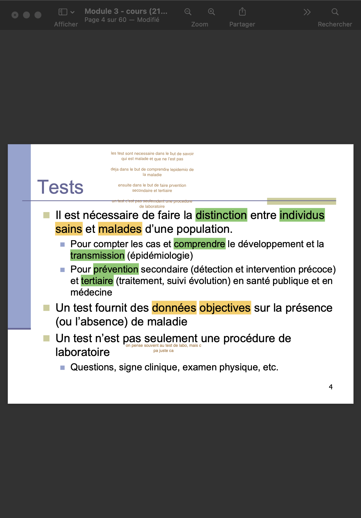 Un test donne des info subjective sur la présence ou sur l’absence de la malade