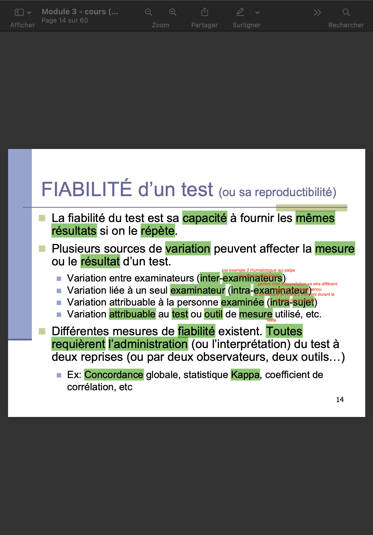 Peut tu donner quelque exemple de mesure de la fiabilité (diapo 14)