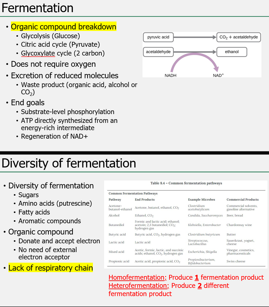 -Is not anaerobic respiration because it lacks a respiratory chain