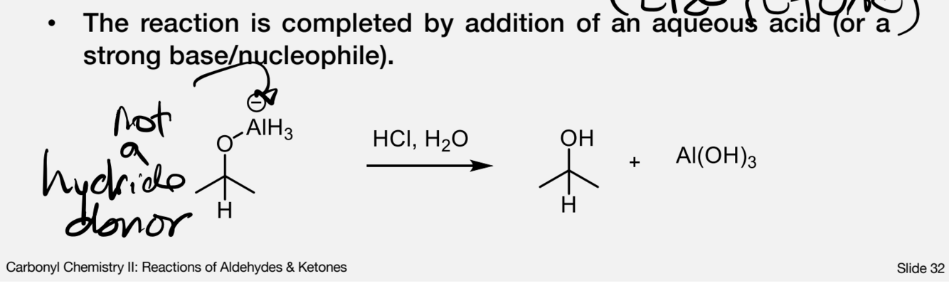 Describe and draw the final step of a carbonyl reduction in AlH4-