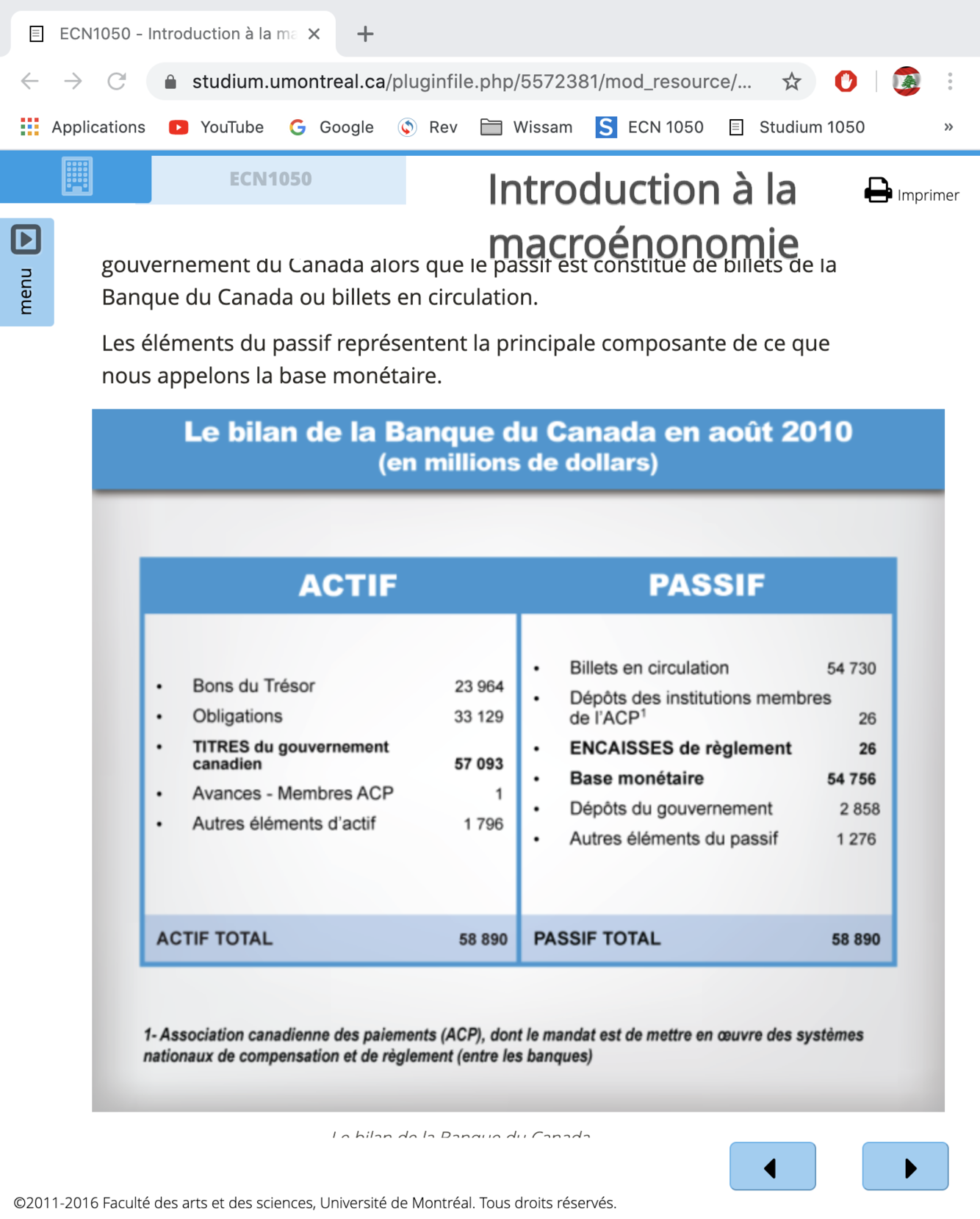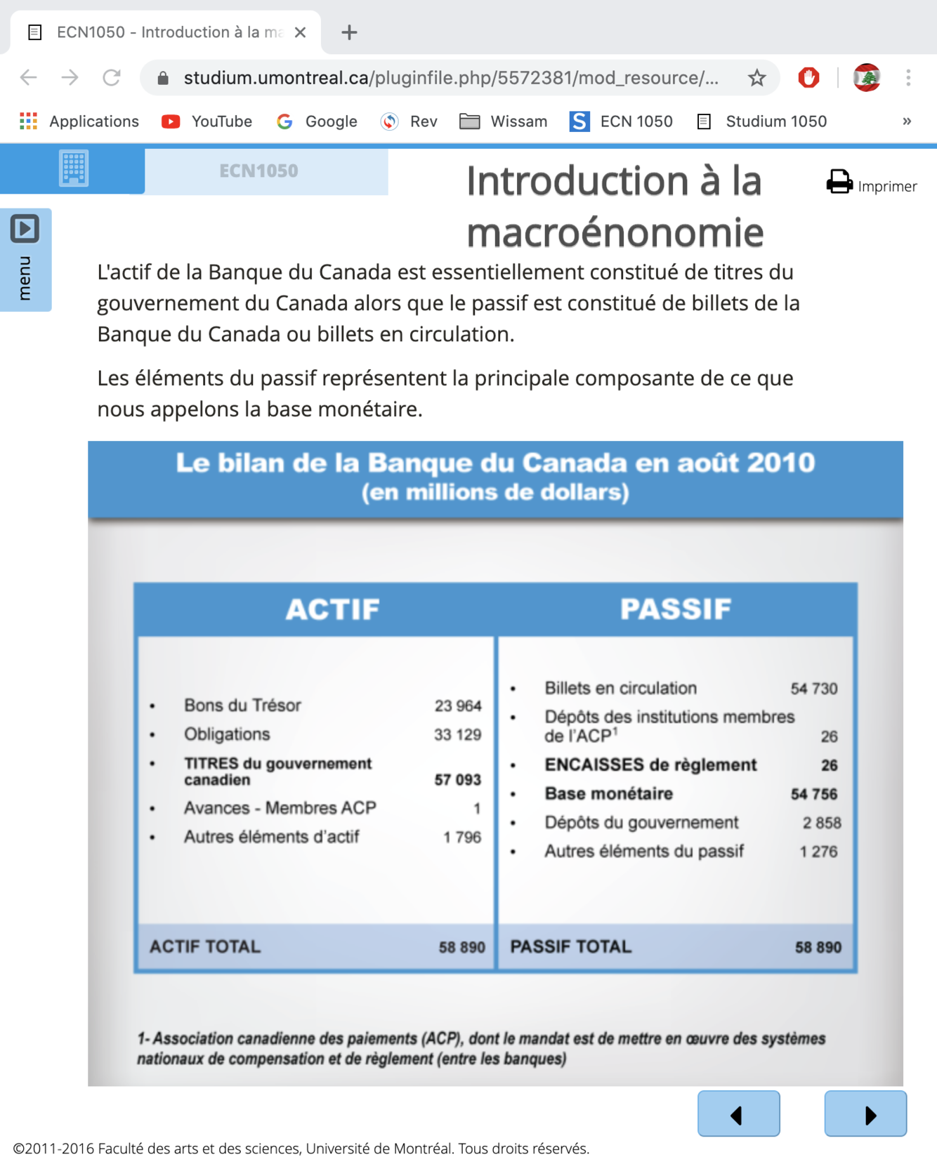 Ce sont les éléments du passif de la Banque du Canada qui représente la principale composante de la base monétaire