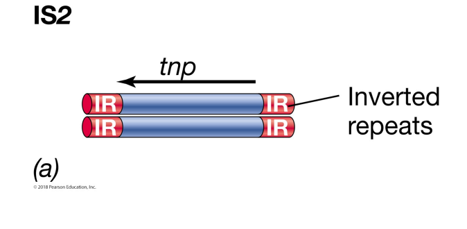 transposable elements. They are 1-3 kb in length & contain a gene encoding the transposase protein (has endonuclease & integrase activities). The IS element contains an inverted repeat sequence at its ends that is recognized by the transposase.