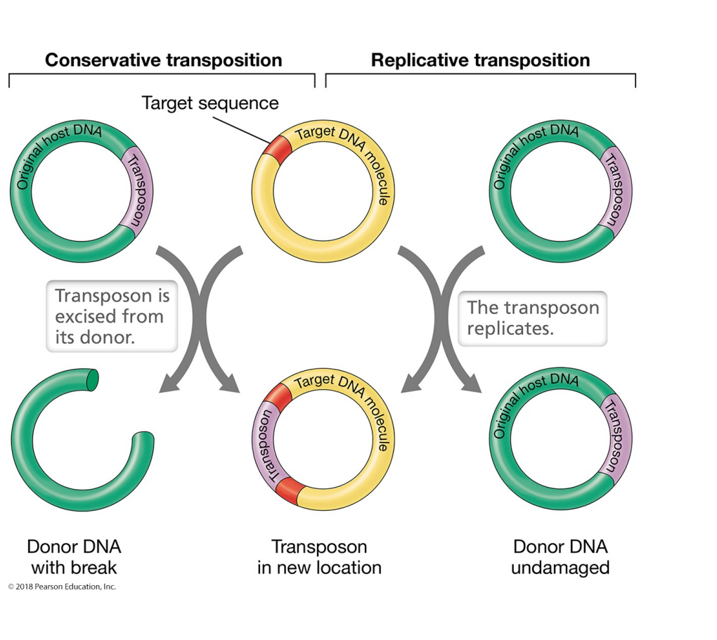 The transposable element is excised from one location and becomes reinserted at a second location (eg IS1, Tn5). The copy number of a conservative transposon therefore remains one.