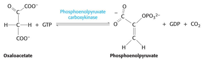 Note that the hydrolysis of GTP rather than ATP is used to drive this reaction forward, at least in animals. Some bacterial forms of the enzyme use ATP.