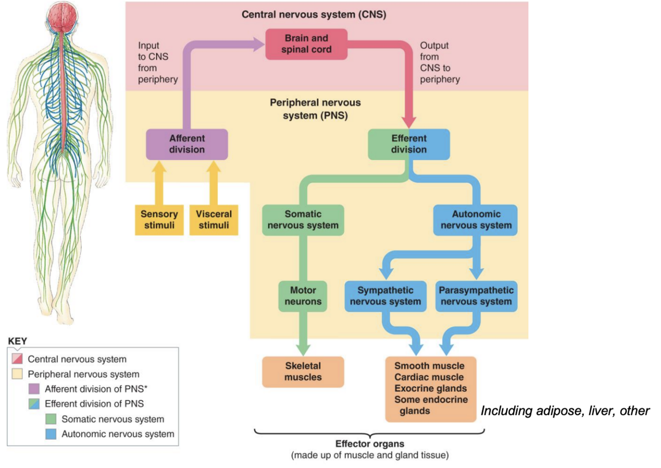 Efferent = motor signal that leaves the CNS => PNS => Effector