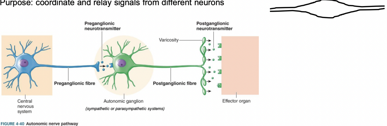 Varicosity = Increased SA of the postganglionic fibre so that it hits more of the effector