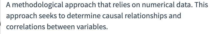 establish large-scale patterns, doing so through the presentation of numerical data (numbers). Best able to capture patterns that apply to large populations