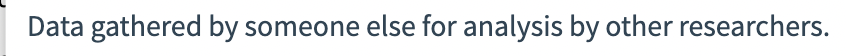 the data have already been collected, so the researcher cannot design their own questions meant to specifically target their research topic. Instead, they work with the variables available to them in the dataset.