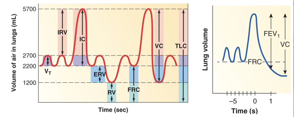 the limits on ventilation are during expiration and not inspiration, which is why expiration provides useful data bout pulmonary function