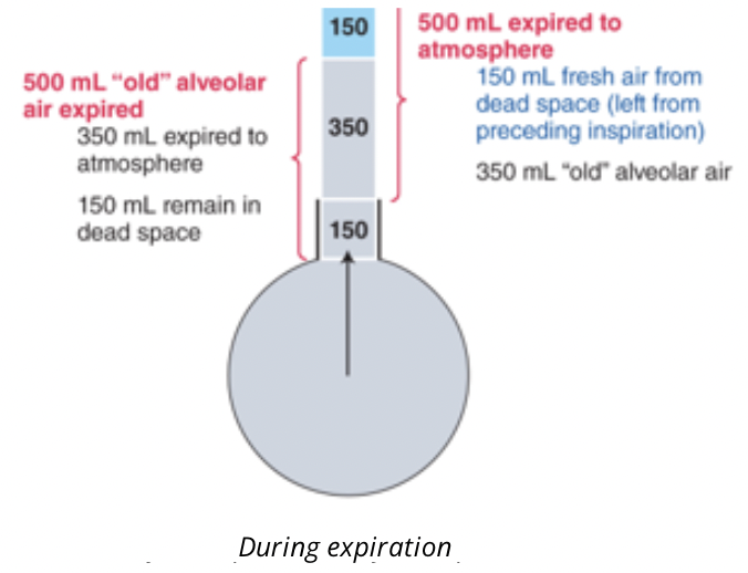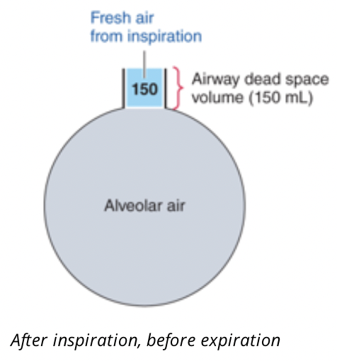 when we exhale the tidal volume of 500ml, only 350ml of air is expelled and again 150ml of air is in the airways