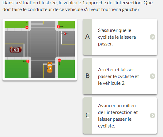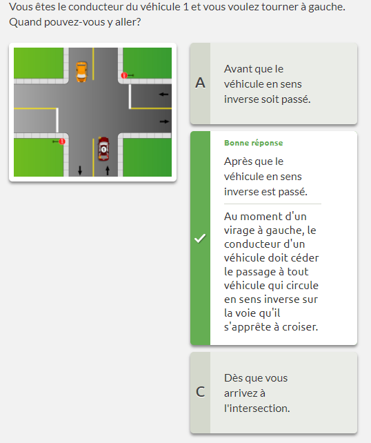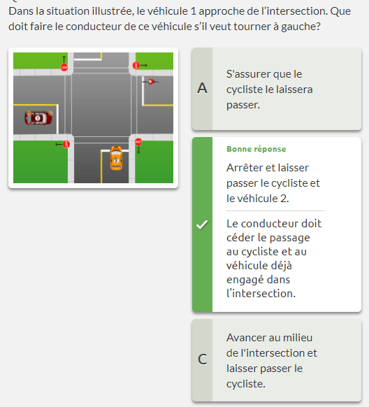 Devant un feu rouge, à une intersection où le virage à droite est permis, un conducteur veut tourner à droite. Quelles sont les étapes à respecter pour que la manœuvre soit sécuritaire?
