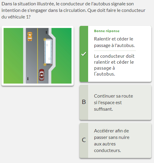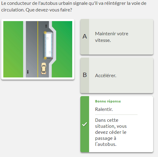 Arrêter, attendre que les feux intermittents de l’autobus soient éteints, puis continuer sa route.