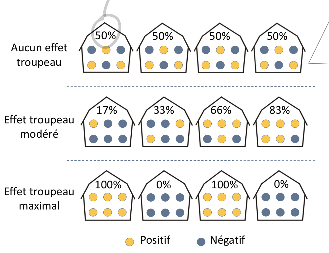 2) Troupeau avec un effet troupeau maximal : le fait de sélectionner plus d’un animal (augmenter la précision) augmente-t-il l’information sur le statut des animaux du troupeau?