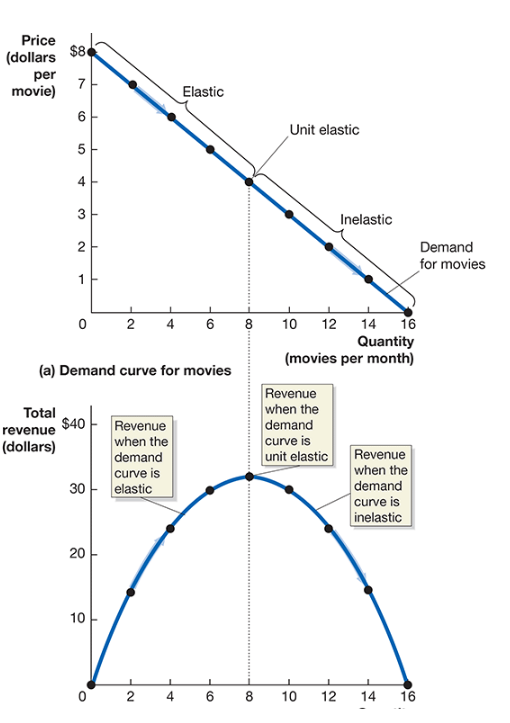 Revenue is maximized at the point where demand becomes unit elastic.