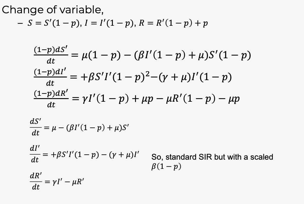 Show that the SIR model incorporating vaccination and the default SIR model are the same.