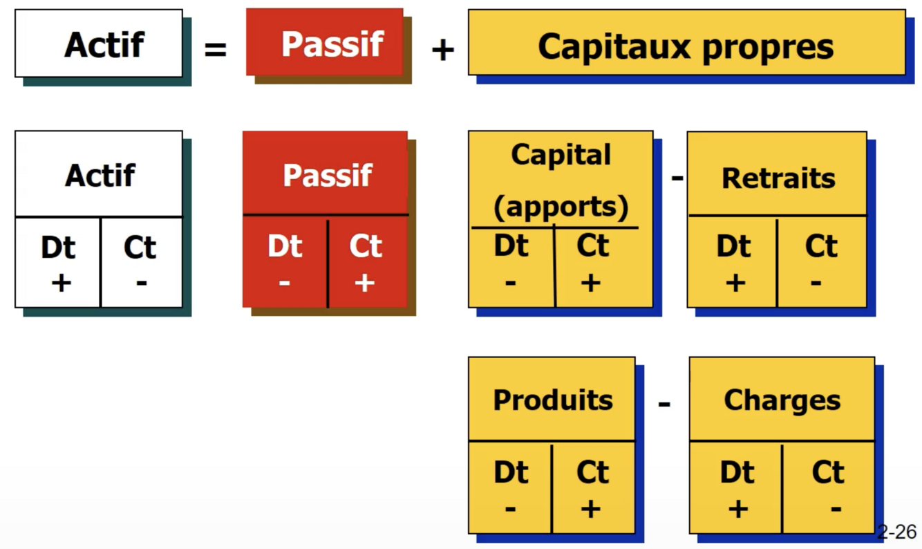 Pour les charges payées d’avance et les produits constatés d’avance le compte ne sera pas toujours au débit ou crédit, dépendemment de la politique de comptabilisation initiale de l’entreprise.