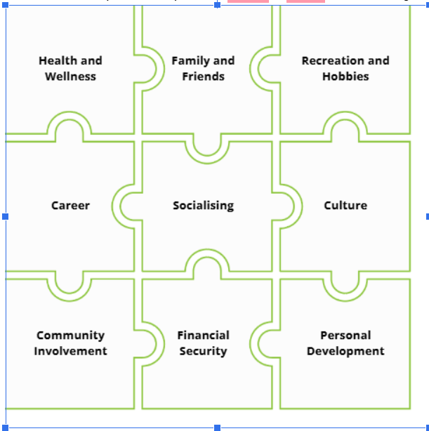 Time on self and others: Are you spending enough time on activities.interests that support your own health and mental health. Are you taking enough time to connect with others