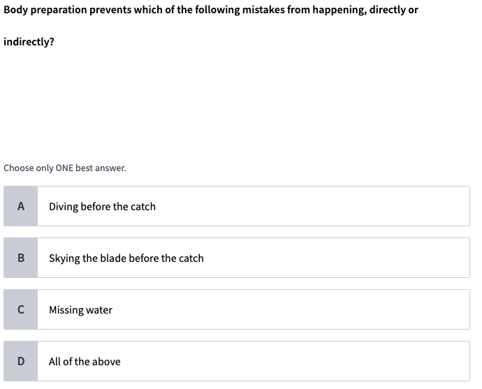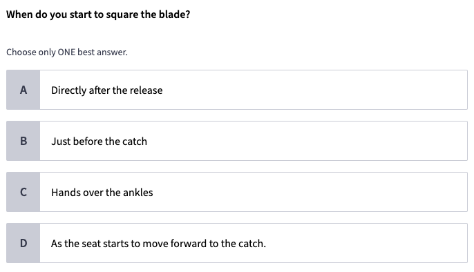 Module 4 - Basic Rowing Technique Flashcards