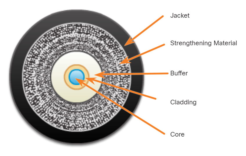 this surrounds the buffer and is used to prevent any stretching of the cable. This layer is often manufactured using the same material found in bulletproof vests