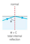 Sketch a diagram showing light approaching the boundary between glass and air when the angle of incidence is greater than the critical angle