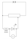 1. Set up the circuit as shown in the diagram 2. Increase the p.d until the LED first turns on (even if it is extremely dim), this is the threshold p.d 3. Repeat this for many different colours of LED 4. Plot a graph of threshold p.d against 1/λ 5. eV = hc/λ => V = (hc/e)(1/λ), therefore the gradient = hc/e 6. solve for h