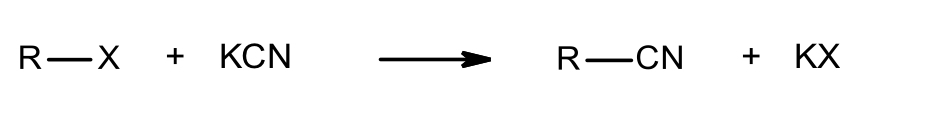 What are the conditions in the reaction between a haloalkane and KCN?