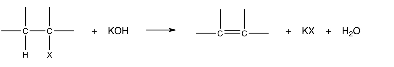 What is the reaction between a haloalkane and hot ethanolic KOH (or NaOH)?