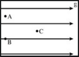 Suppose a region of space has a uniform electric field, directed toward the right, as shown in the figure. Which statement is true?