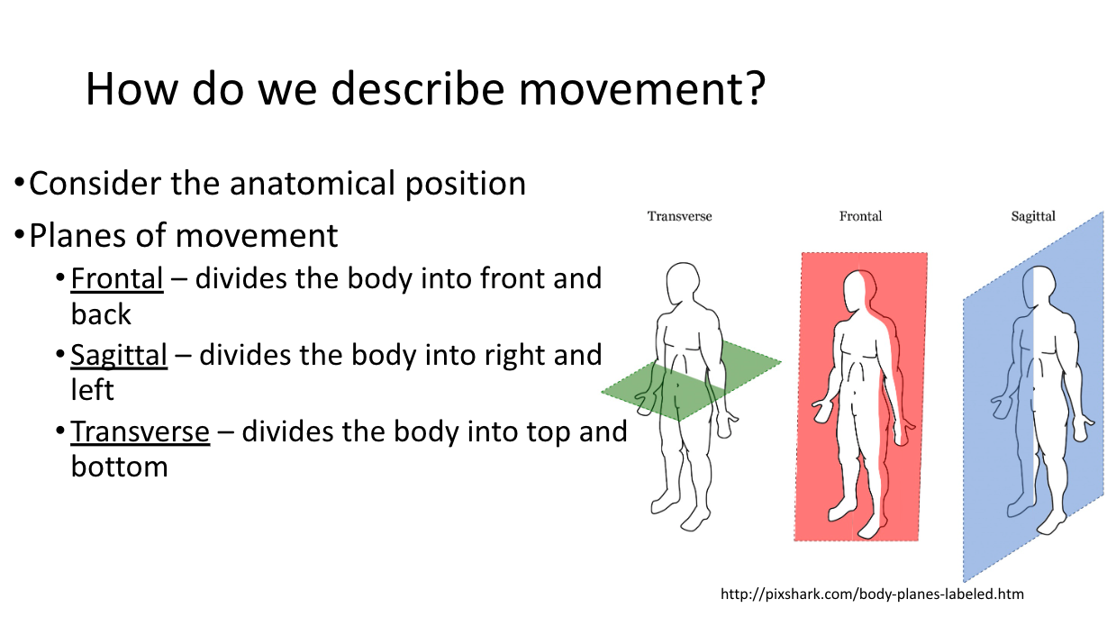 List and describe the three main planes of movement