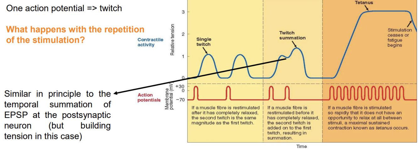 Twitch summation is sending action potentials (multiple of them) before the muscle fibre has the chance to relax