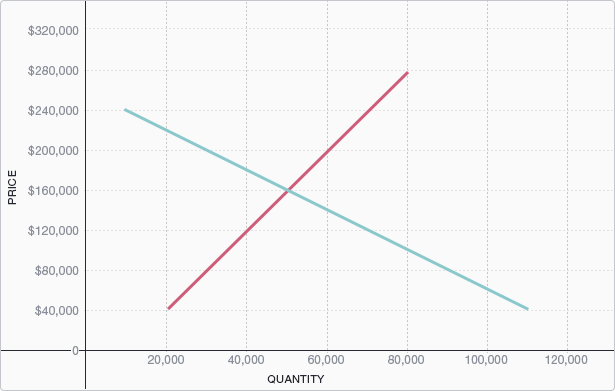 At a price of $160,000, firms would demand 50,000 lawyers. This would result in 30,000 unemployed lawyers which would not be an equilibrium result in the short-run.