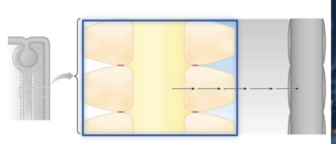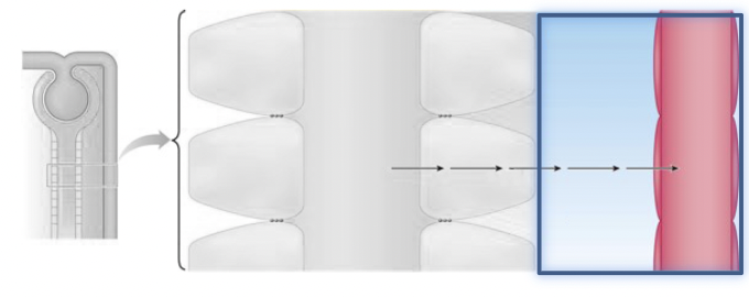 reabsorption then continues with passive movement of substances from the interstitial space back into the blood stream