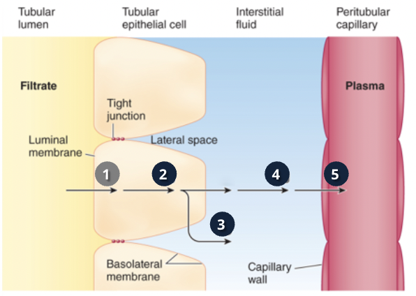 reabsorption begins with either active or passive movement of substances from the tubule into the interstitial space