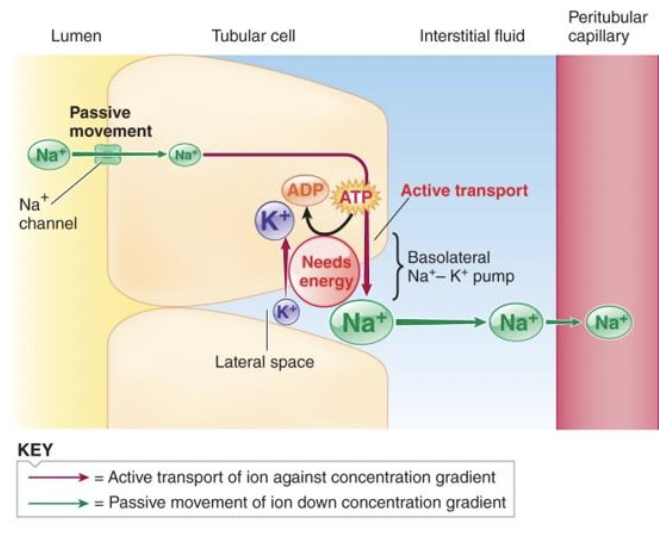 the mechanism of passive transport of Na+ across the luminal membrane varies throughout the various segments of the tubule