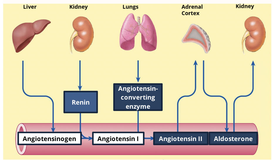 once renin has been secreted inot the blood, a series of events occur to regulate Na+ within the blood