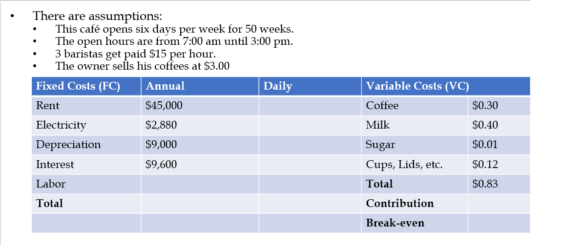 A firm that fails to cover both its direct costs (e.g., finished goods/components, materials, supplies, sales commission, transportation) and its indirect costs (e.g., administrative expenses, utilities, rent) will not make a profit. A popular way to associate costs and prices is through breakeven pricing as indicated above.
