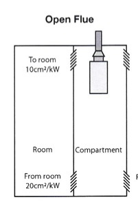 Assuming it is an O/F boiler in the compartment what size per kW do these vents need to be?