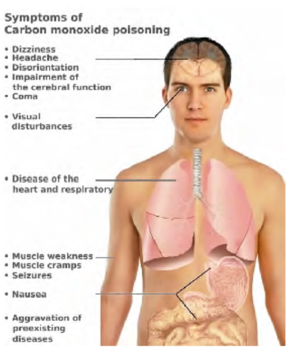 -CO exerts its deadly effects by competing with oxygen for binding to heme