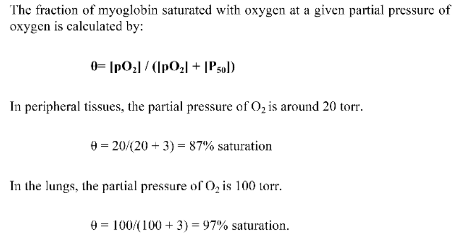 -fraction of myoglobin saturated with oxygen at a given partial pressure of oxygen is calculated by: PICTURE