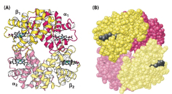 -is an allosteric protein whose oxygen affinity is regulated through various physiological signals