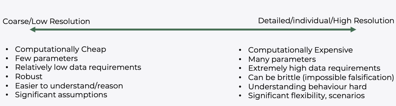 Which considerations need to be made when creating a model? (Name 5)