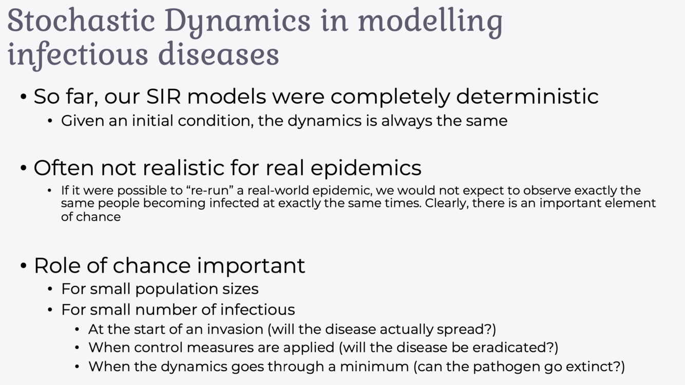 Why would we want to introduce Stochasticy when modelling infectious diseases?