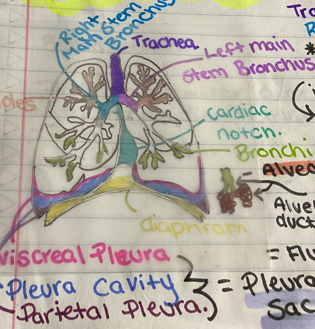 Parts of the lungs (labelled diagram)