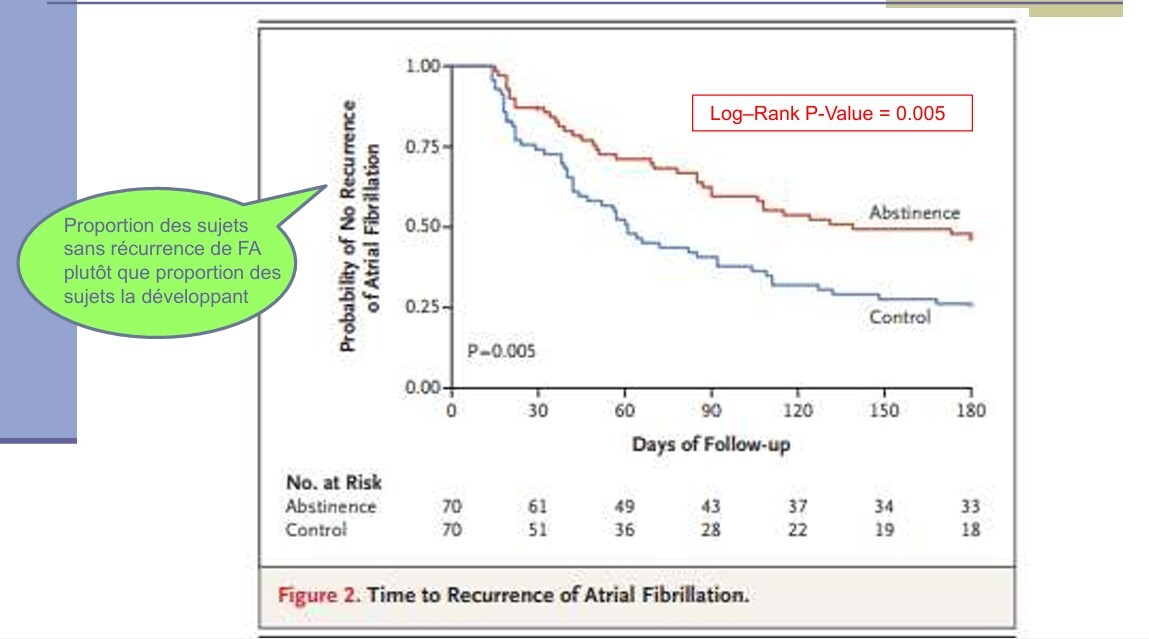 Chez les patients chez qui l’issue n’arrivent pas, ou décèdent, ou sont perdus de vue, on les censure et on mesurera le temps de suivi avant la censure