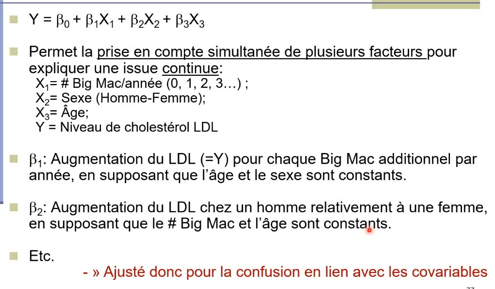 On prend en compte simultanément plusieurs facteurs pour expliquer une issue continue