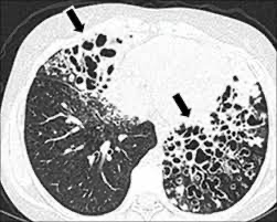 Inflammation would spread beyond the airways to the lung parenchyma, causing fibrosis