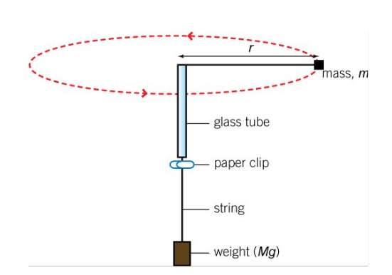 Force on bung towards centre of circle caused by weight of slotted masses (measure with balance then W=mg)